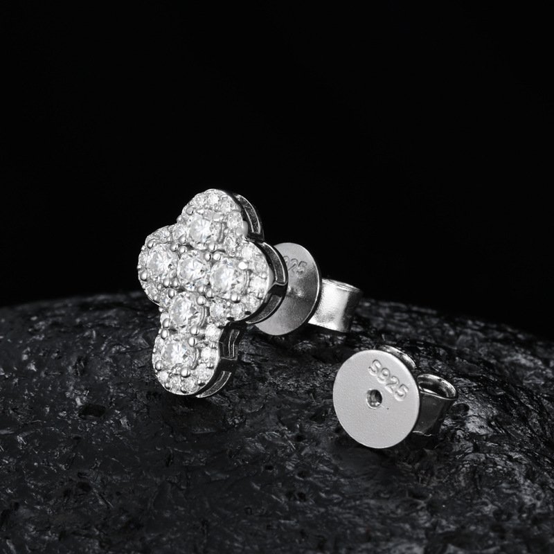 Elevate your style with the Silver Iced Out VVS Moissanite Clover Stud Earrings. Dazzling, durable, and designed to impress. Free shipping, hassle-free exchanges, and premium packaging included.